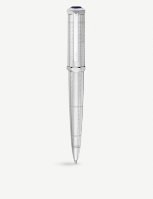 Cartier, transatlantique roadster ballpoint pen, with rivet motif in palladium finish metal surmounted by a blue resin cabochon, marked 'cartier' and numbered, accompanied by instruction booklet.
